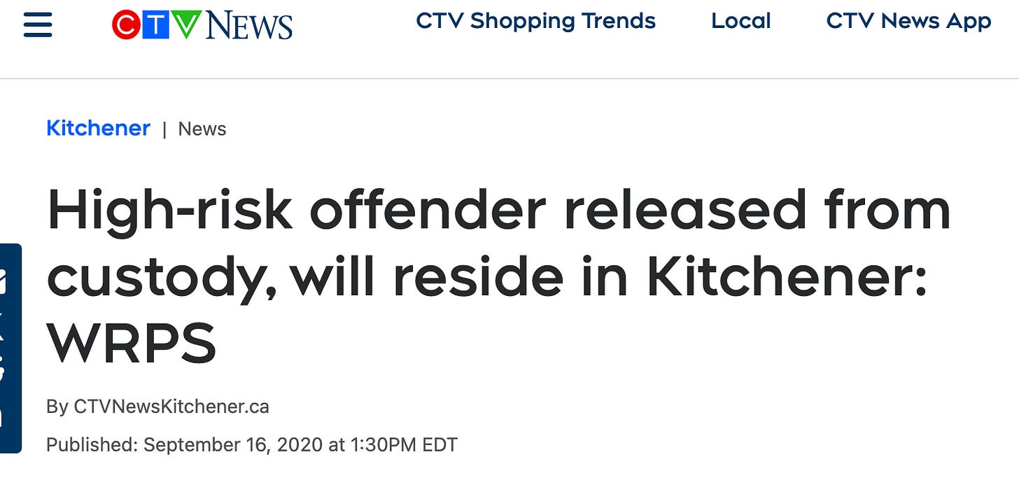 The next day, my counsellor called to let me know her facebook page was filled with news posts and statuses about the release of my offender in Waterloo. She seemed to have more friends and family still living there than I did, because I hadn’t heard a thing.